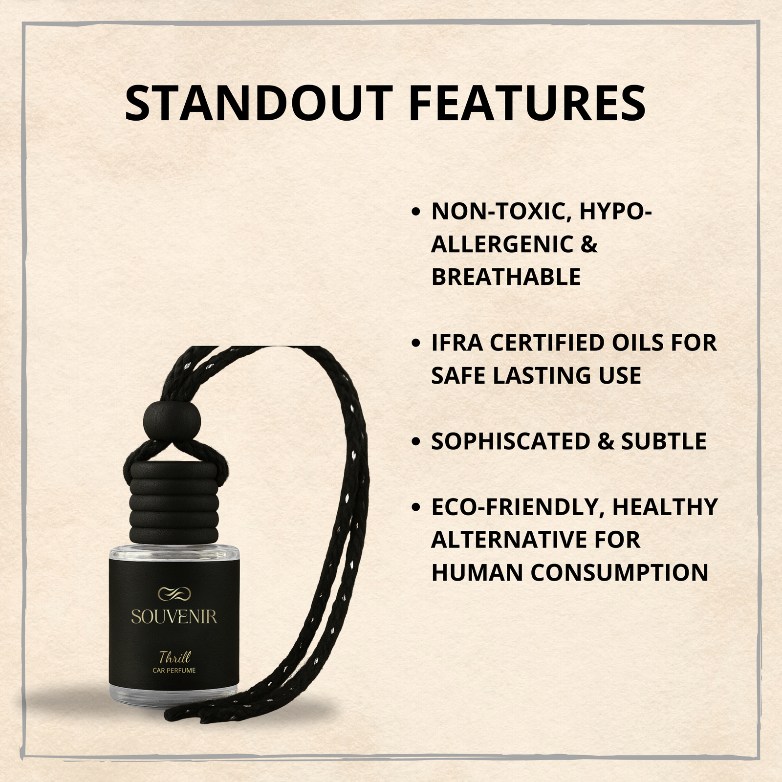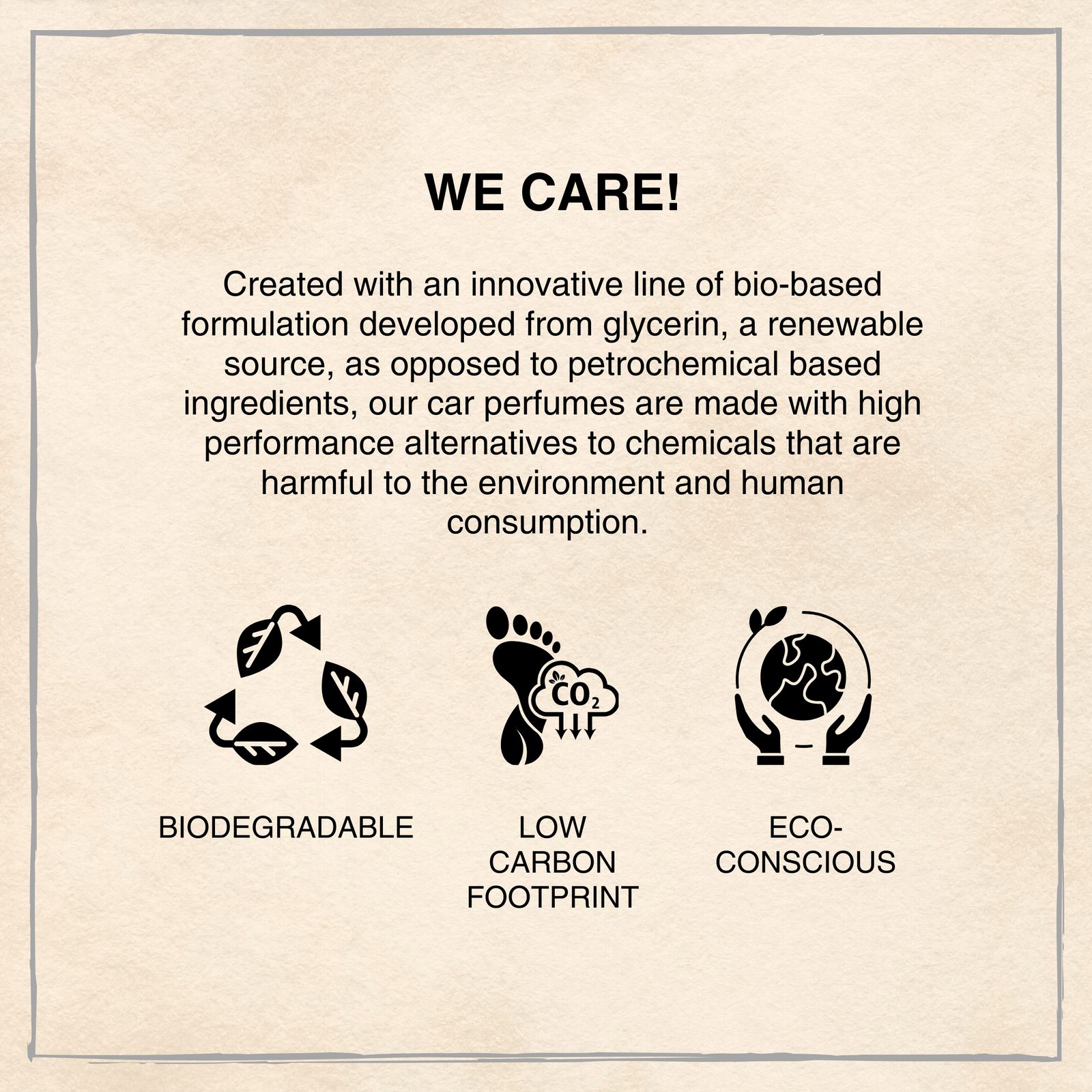Our car perfumes are made with eco-friendly, biodegradable solvents that are good for human consumption and the environment at large.