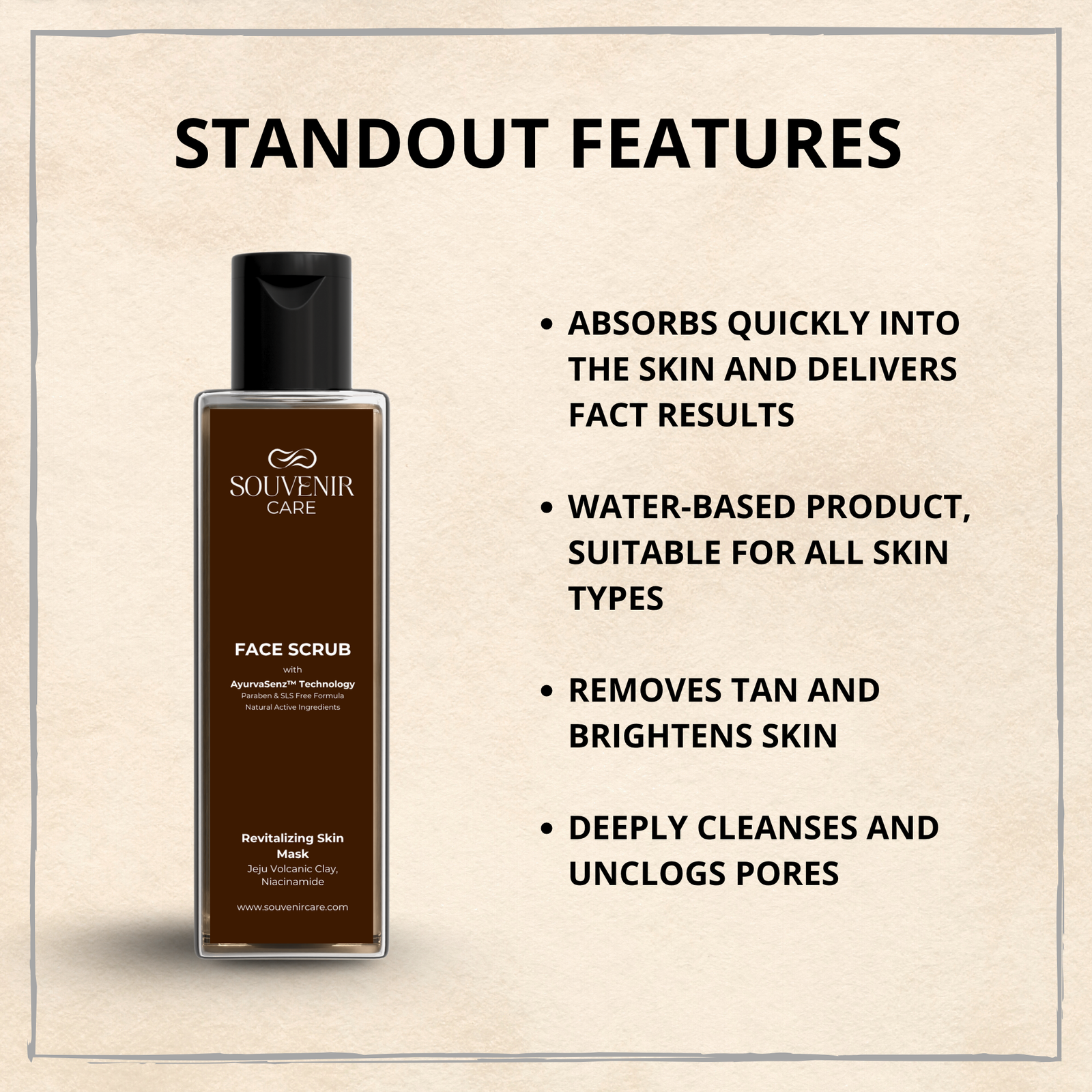 A mineral-rich exfoliator that detoxifies and brightens. This scrub gently removes tan, controls excess oil, and reveals smoother, glowing skin with every use.